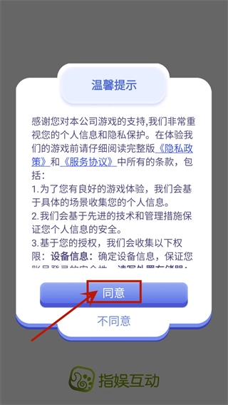 在这个平台完成游戏安装操作后,启动游戏程序,在弹出的确认界面选择同意相关条款,就能顺利进入游戏游玩了。