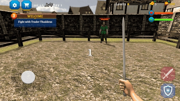 就会进入到决斗的视角,打败他就能获得武器店了。