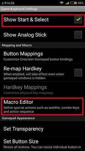 第二步:在设置页面中找到 Show Start & Select 选项并启用它。随后点击下方的 Macro Editor 进入宏编辑器。