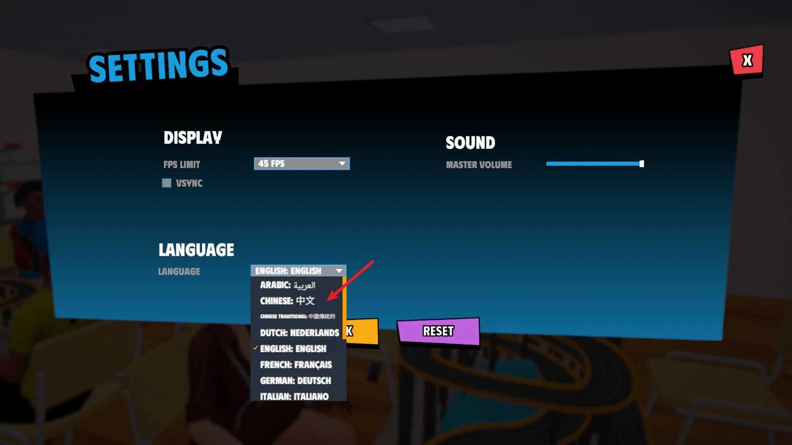 2、接着点击这里的language,在下拉中找到中文。