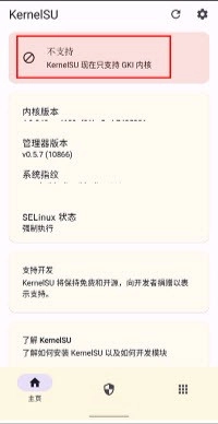 尝试部署KernelSu工具后,启动对应应用时,其安装界面提示当前设备或系统环境无法兼容该功能。