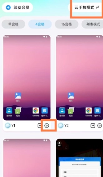 选择云手机后点击齿轮的图标