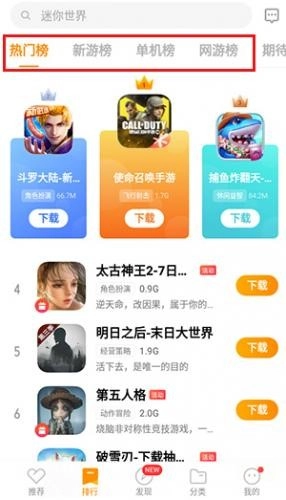 点击排行榜,能看到热门、新游、单机、网游等多种分类榜单,方便玩家更精准地挑选游戏。