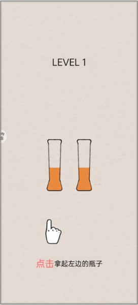 3、完成当前关卡后进入下一阶段,每一关的目标均有所不同,需将相同颜色的水倒入对应的容器中,才能顺利过关。