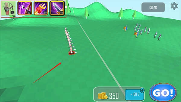 3、在游戏界面左上角找到兵种选择栏,挑选好兵种后,在我方阵营区域点击或拖拽出理想的阵型,布置完毕后点击\\"go\\"按钮发起进攻;