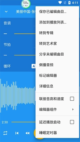 3、具备均衡器调节功能,可兼容多种音频文件格式,并且支持对部分音频进行无限循环播放。