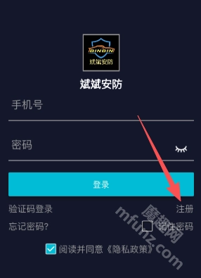 1、打开斌斌安防,点击注册