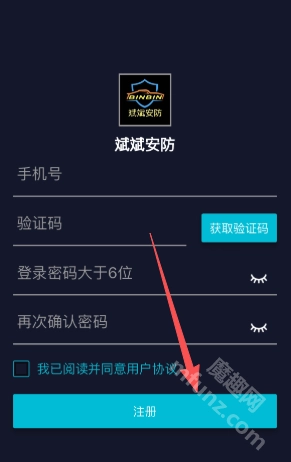 2、填写手机号与验证码,密码由您自行设置,完成后点击注册按钮即可