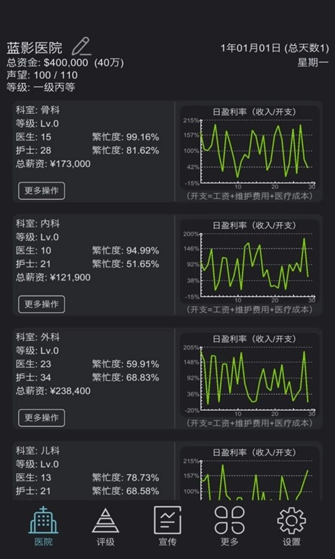 1、持续经营以积累更多金币,逐步升级医院设施、扩大运营规模,并不断推进任务的完成;