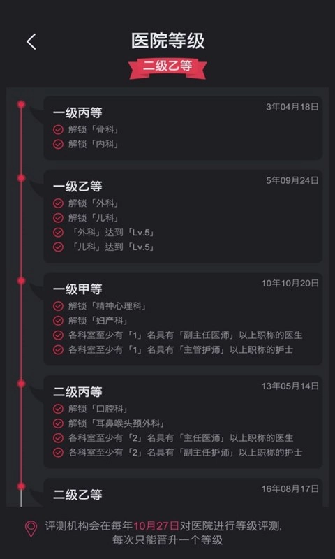 3、升级系统:在持续经营医院的过程中,你能够对医院进行升级,以此增加可接诊病人的数量,提升医院的知名度。