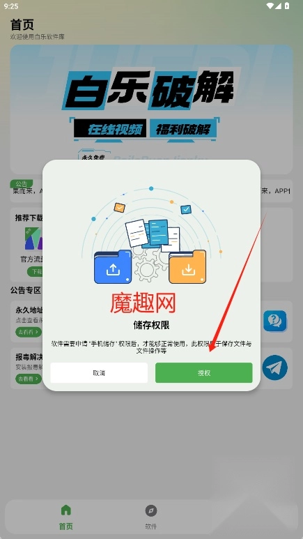1、打开白乐软件库点击授权进入软件