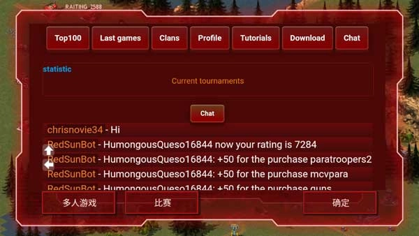 在这里你能浏览到最新的游戏和排名前100的游戏玩家,点击赛事按钮即可。