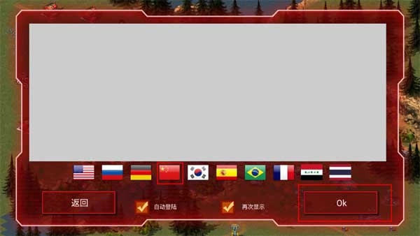 启动游戏后,界面会呈现多个国家的旗帜选项,找到代表中文的旗帜并选中,再点击确认按钮,就能将游戏语言切换为中文了。