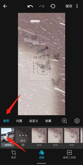 2、先点击“推荐”选项,接着再点击“一键雪景”选项就可以了。