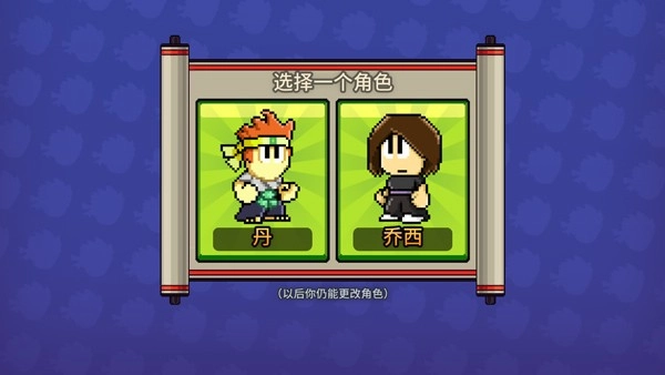 1、启动《英雄丹》游戏后,新玩家需要创建角色,初始阶段可选择的角色有丹和乔西两位。