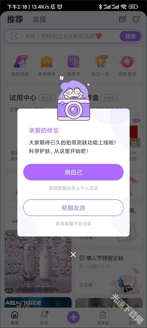 3、参与测试来了解自己皮肤的小秘密,要是想获得同样的皮肤推荐,也能找一位和自己肤质相同的好朋友,一起分享产品以及各自的皮肤护理使用方法。