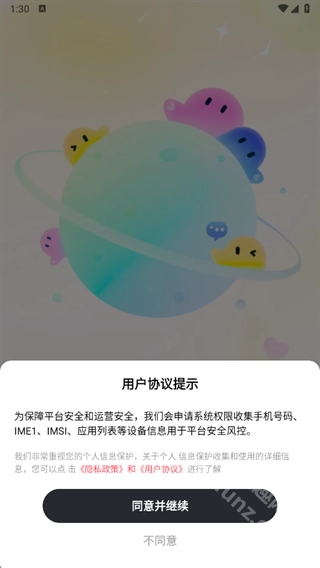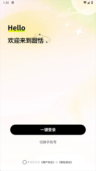 1.打开甜恬后点击同意并继续。