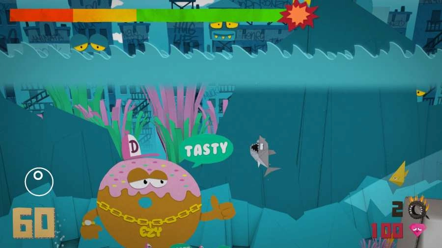 1、这款游戏运用了极具创意的折纸美术风格,游戏里的所有物体都以折纸的形式呈现。玩家需要操控名为德里克的鲨鱼四处冲撞觅食,要是长时间没能捕获到食物,游戏就会结束!