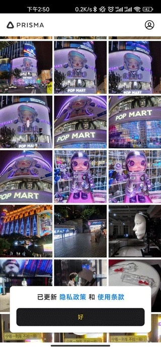 2、页面弹出“已更新隐私政策……”的提示后,点击下方的“好”按钮,随后进行选图操作。