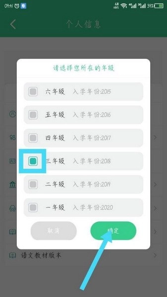 4、进入打开的个人信息界面后,找到并点击年级选项,具体操作可参考图示。
