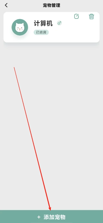 2. 在宠物管理页面里,直接点击添加宠物按钮就能继续下一步操作。