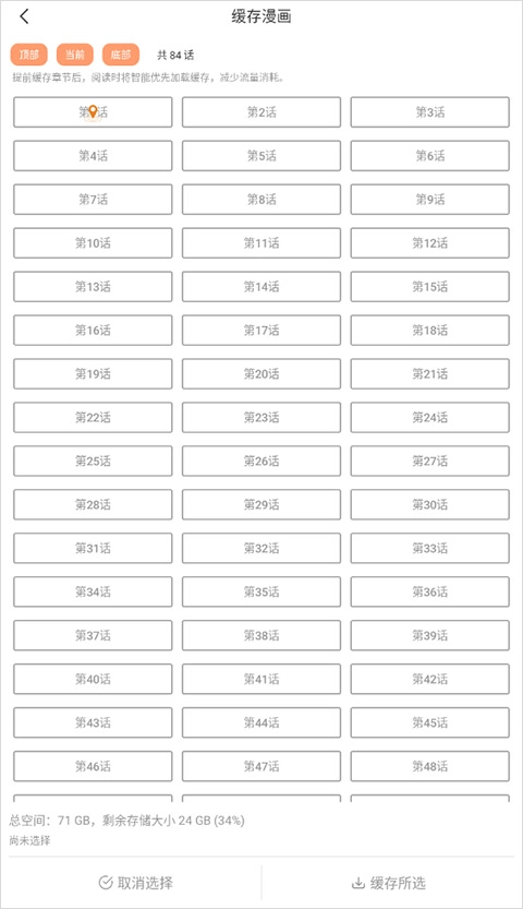 1、同样是在漫画详情页界面点击下方的“缓存”