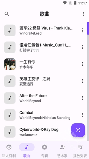 在歌曲板块,用户能够查看自己所有的本地音乐,便于管理个人音乐收藏。