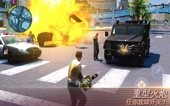 你能够尽情探索海量地图,其规模是以往Gangstars系列的9倍之大。