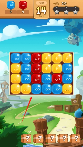 2、进入游戏后,红框标注的是当前关卡需要收集的目标气球,白框显示的是剩余步数。