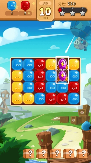 4、一次性消除五个同色气球会触发特殊道具,将两个“道具”合并可生成威力更大的道具。