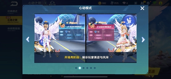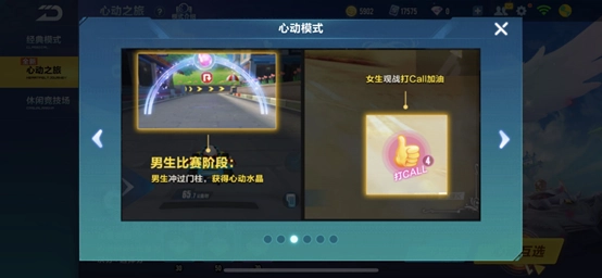 新上线的心动之旅玩法包含两种模式:单人匹配的心动互选模式与组队匹配的携手比拼模式。在心动互选模式里,车手能认识异性伙伴,开启浪漫缘分:女生可为心仪的男生加油打call,助力他获得更优成绩;男生则能给心动的女生赠送道具,甚至可以为她爆灯,召唤飞马一同携手飞行;在最后的心动互选环节,若男女双方互相选择,即可进入心动之旅模式独有的浪漫房间。而在携手比拼模式中,车手可以和熟悉的异性伙伴组队协作,凭借默契共同参与比赛、赢得胜利。