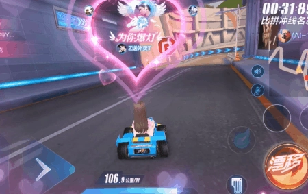 在这个环节里,三位男性参与者展开速度竞赛,他们需要在赛道上撞击预先设置的标志物。每完成一次撞击,会根据最终排名得到数量不等的特殊道具,排名越靠前,获得的道具越多。这些道具将用于后续为女性参与者准备礼物的环节。女性参与者在一旁观看比赛时,可以自由切换关注的男性选手,还能通过点击特定按钮为心仪的选手加油助力,帮助对方积累加速能量。尤其在选手撞击标志物的短暂窗口期内点击按钮,能触发更高效的能量加成,助力选手取得更优异的竞赛成绩。