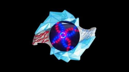5、在变身过程中,手镯中央的水晶会自动打开并显示出炫目的显示屏,伴随着红蓝双色光圈的旋转,每种晶石都会呈现出独特的视觉特效。