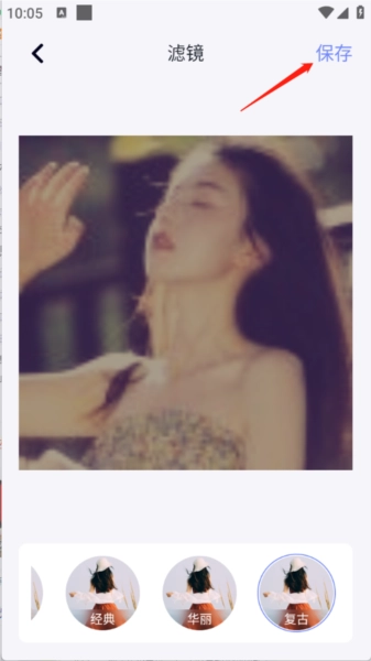 3、从相册中选择图片,选定对应的滤镜效果后,点击右上角的“保存”按钮即可完成处理。