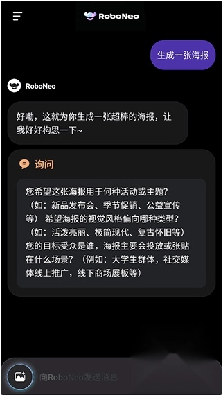 5. AI会询问海报设计内容,按这个思路回答。