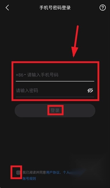 3、输入手机号码与密码,勾选“我已阅读并同意用户协议、个人信息保护政策和账号规则”,点击登录按钮即可完成操作。
