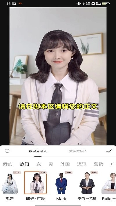4、挑选数字人模板:浏览并选定系统给出的数字人模板,若有需求,也能从个人相册里导入形象。