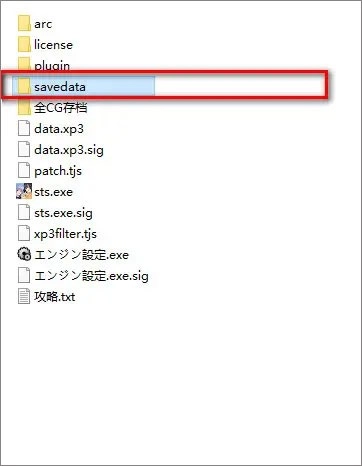 2、看到上面的全CG存档了吗?打开这个文件夹,把里面的文件复制出来,再打开savedata文件夹,将复制的文件粘贴进去覆盖原有内容,这样启动游戏就能看到所有CG了。