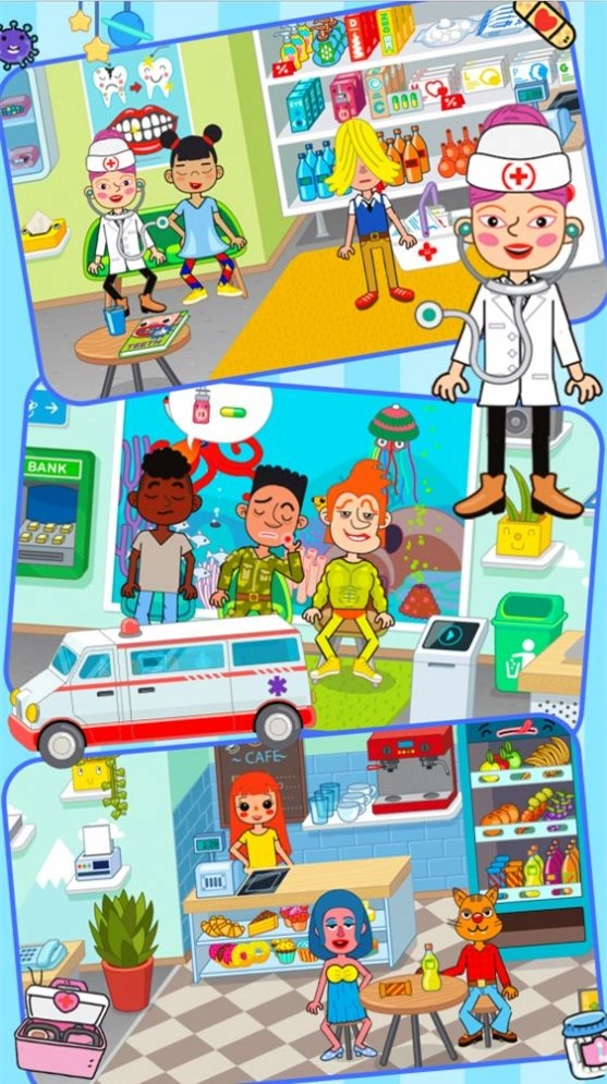 1、欢迎来到樱花镇超级医院!你可以选择成为医生在这里救死扶伤,或是扮演病人体验就诊流程,也能单纯作为充满好奇的探险家,在医院里探索未知的角落。