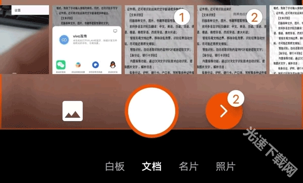 首先前往该页面获取此应用软件,完成安装后点击打开。进入应用后,会看到白板、文档、名片和照片等选项,你可以依据自身需要扫描的文件类型进行选择;另外,也能点击左侧的图片图标,从手机本地相册里挑选待扫描的内容。选好之后,点击右下方的红色尖括号即可。