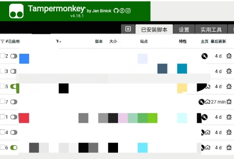 脚本使用指南:安装完成后,点击油猴插件的图标,将展示当前网页所有正在运行的脚本列表。点击脚本前的按钮可开启或关闭该脚本,点击脚本本身则可进行编辑、删除或排除当前网站等操作。大部分操作与Chrome浏览器相似,易于上手。