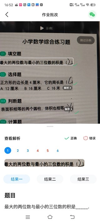 4、稍作等待就能快速批改作业,并且还会针对每道题目给出详细的答案解析