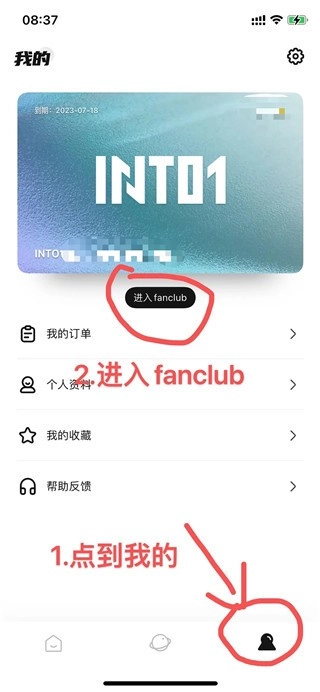 1、安装好软件后,点击打开软件进入主界面。接着选择【我的】板块,然后点击fanclub选项。