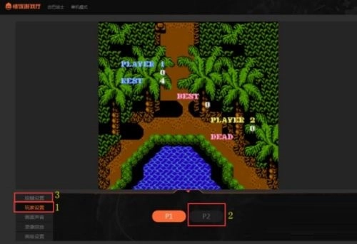 第一步:打开悟饭游戏厅,启动任意一款游戏后,点击玩家设置选项,接着选择P1(具体操作可参考图示)。