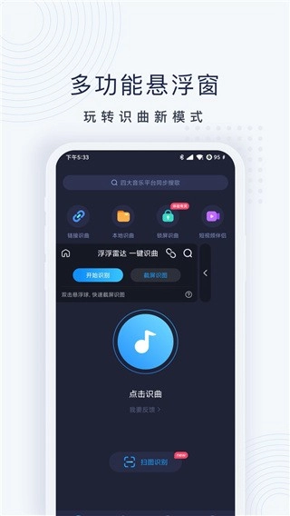 2、当你打开主流短视频平台时,悬浮球会自动弹出,随时准备捕捉手机里播放的背景音乐,让你不错过任何精彩的音乐片段。