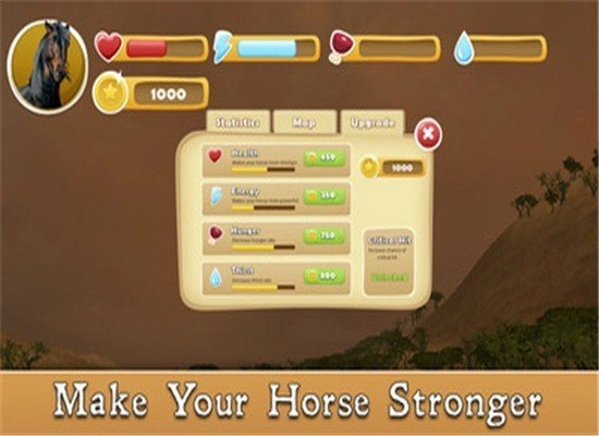 真实模拟一匹马的日常,游戏场景画风高度还原非洲大陆的真实风貌;2. 非洲大陆上还栖息着其他动物,你能够自由地与各类动物展开互动。