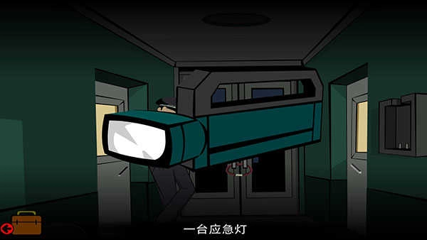 点击医院大门进入医院大堂,接着点击右上方的大玻璃门进入走廊,然后点击上方箭头,在右侧墙壁上取应急灯,最后点击左侧箭头后退。