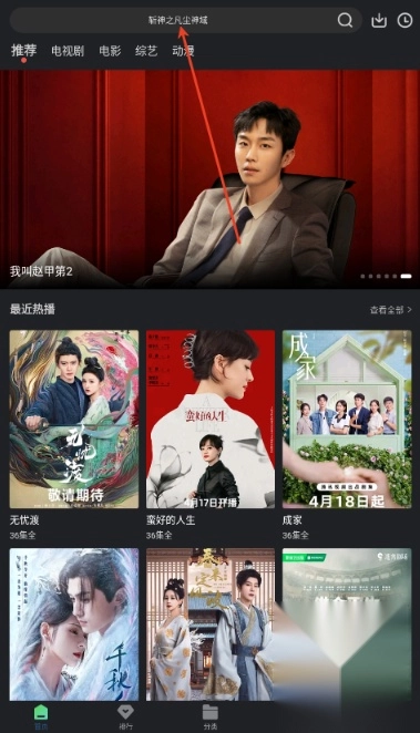 2.通过搜索栏输入片名或演员,快速找到想看的剧。
