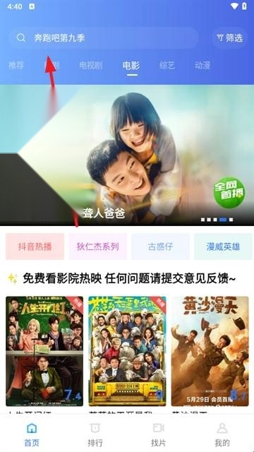 2. 进入软件后,在首页搜索我们想播放的视频内容。