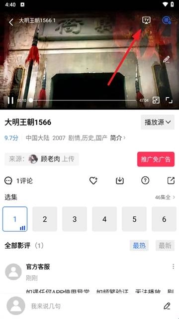 4. 进入视频播放页面后点击右上方的电视TV图标。